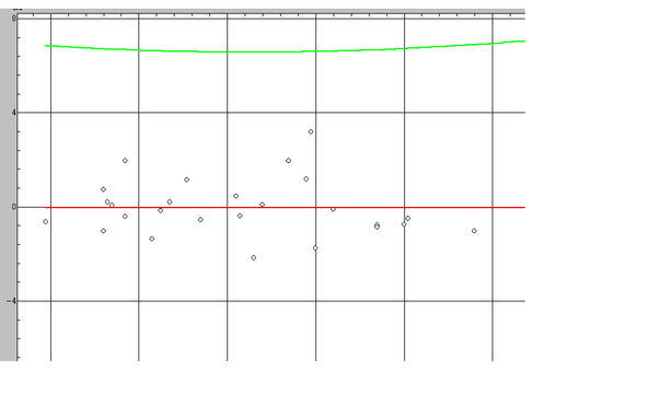 от изменения признака Х7. По оси ординат (У) отражено значение остатков , по оси абсцисс (х) значение признака. Как видно визуально гетероскедастичность отсутствует.