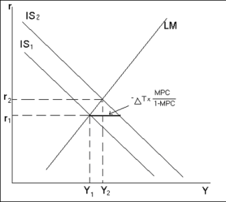 Рис.1 Стимулююча фінансова політика в моделі ІS-LM (скорочення податків)