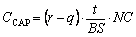 де r — поточна ринкова ставка; q — CAP-ставка; t — тривалість періоду в днях між довідковою датою на момент розрахунків та наступною довідковою датою; BS — база розрахунку (дні); NC — умовна сума опціону.