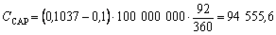Суму 94 555,6 дол.. банк за угодою CAP виплатить клієнтові 31 серпня. Якщо клієнт має реальний кредит на суму 100 млн. дол.. під плаваючу ставку, яка базується на тримісячній LІBOR, то його зобов’язання з виплати відсотків у період з 31.05 до 31.08 обчислюватимуться з огляду на рівень 10,37 %. Але угода CAP дозволила позичальникові компенсувати додаткові витрати з виплати процентів, які перевищують рівень CAP — 10,0 %. Сума 94 555,6 дол.., отримана від банку клієнтом, дорівнює сумі перевищення виплати процентів за кредитом над рівнем 10,0 %.