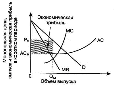В условиях монополии равновесие также установится на уровне MR=MC, объем производства Q известен из предыдущего пункта. Подставив Q в уравнение для валового дохода TR можно найти валовый доход монополиста, равный площади фигуры, заштрихованной на рисунке 2.1. Разделив TR на Q найдем отрезок PMACM, который представляет собой величину превышения цены монополиста над ценой фирмы – совершенного конкурента. Значит цена в условиях монополии установится на уровне РМ=Р+ PMACM.