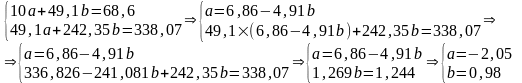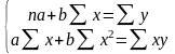 Значения коэффициентов а и b находим из системы уравнений, полученных по способу наименьших квадратов по формуле: