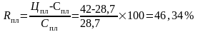 Ппл = VРПпл × (Цпл - Спл) = 320 × (42 - 28,7) = 4256 тыс. руб.