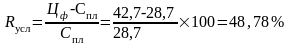 Пусл1 = VРПф × (Цпл - Спл) = 563 × (54,6 - 33,8) = 11710,4 тыс. руб.
