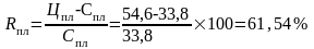 Ппл = VРПпл × (Цпл - Спл) = 550 × (54,6 - 33,8) = 11440 тыс. руб.