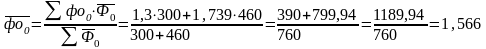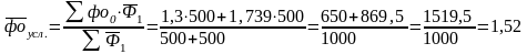 – средняя условная фондоотдача, т.е. фондоотдача базисного периода, взвешенная по структуре весов отчетного периода.
