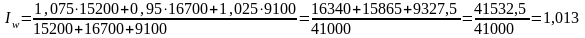 в прядильном цехе (iw1) = 107,5% или 1,075,