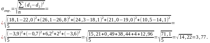 где d1 и d2 – соответствующие данные, n – число единиц в изучаемой совокупности.