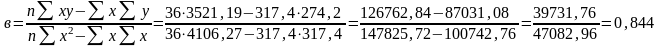 а = 7,617 - 0,844 ∙ 8,817 = 0,175