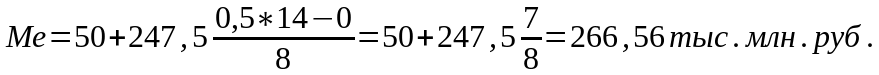 Из расчета видно, что у половины предприятий среднегодовая стоимость основных производственных фондов до 267 тыс. млн. руб., а у другой половина – выше этой суммы.