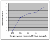 Рис. 4. Кумулята распределения отраслей промышленности по среднегодовой стоимости ОПФ