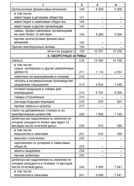 | 4 | Дебиторская задолженность | 9500 | 7841 | -1659 |