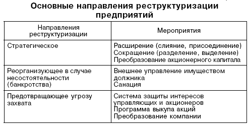 реструктуризация предполагает комплексную перестройку экономической, производственной и социальной систем компании.