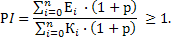 Индекс доходности (рентабельность) (Р1) представляет собой соотношение приведенных доходов к приведенным инвестиционным расходам и определяется по формуле: