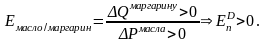 Величина перехресної еластичності попиту може бути додатною, від’ємною або нульовою. Якщо товари взаємозамінювані, то перехресна еластичність попиту на ці товари додатна, тому що при підвищенні ціни одного товару обсяг його продажу зменшується, а попит на товар-замінник зростає. Наприклад, перехресна еластичність попиту на вершкове масло і маргарин буде мати такий вигляд: