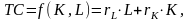 Підприємець завжди зацікавлений у тому, щоб обсяг виробництва мати максимальний, а витрати при цьому були мінімальними. Зв’язок між обсягом виробництва продукції та вартістю її виробництва у довгостроковий період показує функція загальної вартості виробництва, яка відображає сумарну вартість усіх використаних факторів виробництва. Виробнича функція описує взаємозв’язок між витратами факторів виробництва і максимально можливим обсягом випуску продукції. Вона дозволяє обчислити максимальний обсяг продукції для кожного конкретного набору факторів виробництва в умовах незмінної технології. Зміна технології веде до зміни функціональної залежності між структурою затрат ресурсів і випуском. Для аналізу застосовується дво- і багатофакторні виробничі функції. Вони можуть бути подані у табличній, графічній і аналітичній формах. Побудова виробничої функції базується на припущеннях необхідності основних факторів, монотонності (збільшення будь-якого фактора покращує умови виробництва) та взаємозамінності ресурсів. Спрощена функція виробництва, коли фірма застосовує два змінних ресурси працю L і капітал К має вигляд: