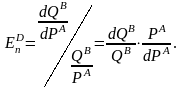 – це процентна зміна обсягу попиту на один товар при зміні на 1% ціни іншого товару (іншими словами, ступінь впливу на обсяг попиту на даний товар зміни ціни на інший товар). Вона показує, на скільки процентів зміститься крива попиту. Коефіцієнт перехресної еластичності попиту за ціною обчислюється наступним чином:
