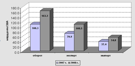 По данным таможенной статистики в 2008 году внешнеторговый оборот России составил 163,3 млрд. долларов США и по сравнению с 2007 годом увеличился на 50,8.