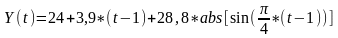 2. Модель квартального обсягу випуску продукції будемо шукати у вигляді функції двох адитивних компонентів :