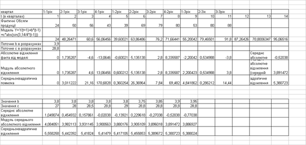 Статистичний аналіз відповідності моделі та фактичних значень хронологічного ряду виконувався за мінімізацією двох показників :