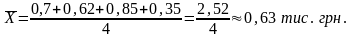 Якщо розглядати найпростішим способом: е чотири варіанта середніх заробітних плат робітників чотирьох підрозділів, тоді розрахунок середньої арифметичної простої матиме такий вигляд: