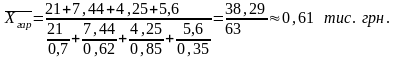 Розглянемо можливість вирішення цієї задачі за допомогою середньої гармонійної зваженої, зважаючи на те, що добутки за кожною ознакою нерівні, за формулою:
