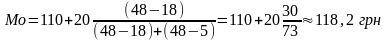 За допомогою формули визначимо значення Моди: