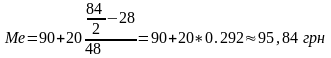 За допомогою формули визначаємо медіальний розмір заробітної плати: