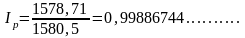 Перевіряємо розрахунки за допомогою агрегатної формули індексу фізичного обсягу, аналогічно до визначення загального індексу собівартості. У цьому випадку нам невідомий числівник, бо невідома собівартість, але відомий індивідуальний індекс собівартості. Оскільки відомі зміни собівартості у звітному періоді порівняно з базисним, тобто індивідуальні індекси фізичного обсягу кожного виду продукції