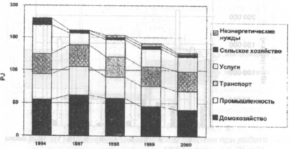 ис. 2.18. Структура потребления энергоресурсов по отраслям в Латвии (диаграмма сравнения) [4, с.30, рис.3]