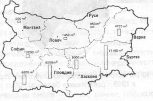 ис. 2.20. Распределение солнечных коллекторов для нагрева воды на территории Болгарии в 1999 г. (картодиаграмма) [1]