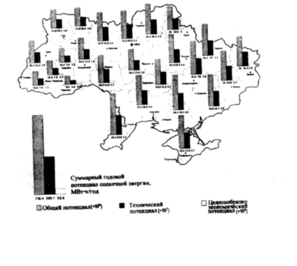 Рис. 2.13. Потенциал солнечной энергии на территории Украины (картодиаграмма) [8] теплоэлектростанции фирмы ABZ (диаграмма Сэкэй) [2, с. 39, рис.2]