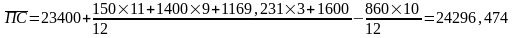 Тогда ПСк.г. = 23400+(150+1400+1600+1169,231) - 860 = 26859,231 тыс. руб.