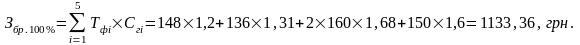 Спочатку визначаємо заробіток бригади при стопроцентному виконанні норм виробітку: