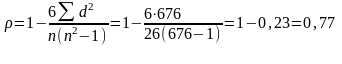 Найдем коэффициент корреляции рангов Спирмена по формуле