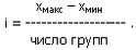Интервал – разница между максимальным и минимальным значением признака в каждой группе.