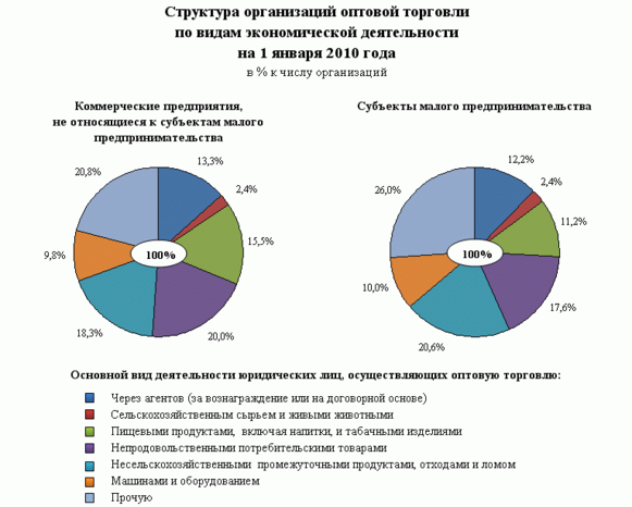 ЧИСЛО ОРГАНИЗАЦИЙ ОПТОВОЙ ТОРГОВЛИ на 1 января 2010 года