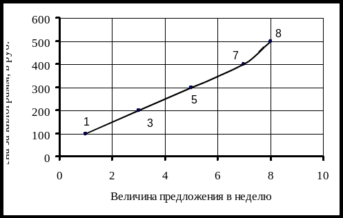 | Цена за килограмм (в руб.) | Величина предложения в неделю |