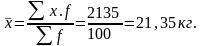 Чтобы определить среднюю величину из интервального ряда распределения, нужно его преобразовать в дискретный, например 20+21/2 = 20,5 кг.
