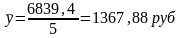 у = 0,5 *153.2 + 155.4 +160.1 +166.7 +.05*184.2 = 162.7 милр. руб.