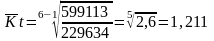 5) Окрім ланцюгових та базисних характеристик для динамічних рядів обчислюють середньорічні характеристики. Визначаємо середньорічний абсолютний приріст за формулою: