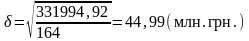 5) Визначаємо середньо-квадратичне відхилення за формулою:
