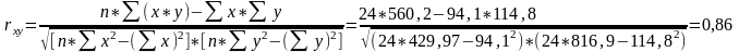 Сопоставив имеющиеся ряды X и Y найдем коэффициент корреляции.