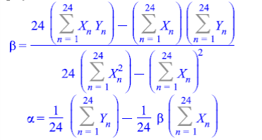 Обозначим ln(f)=y, ln(a)=alpha, ln(b)=beta