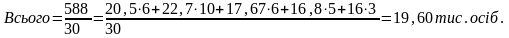 | Всього | 30 | 100,00 | 588 | 19,60 | 193,3 | 6,44 | 290,4 | 9,68 | 493 | 1,50 | ||