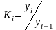 2) відношення кожного поточного базисного коефіцієнту росту до попереднього дорівнює відповідному поточному періоду ланцюговому коефіцієнту росту: