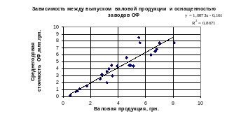 Так как значение коэффициента корреляции близко к единице, то между выпуском валовой продукции и оснащенностью заводов основными производственными фондами есть тесная зависимость.