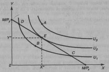 Сам процесс максимизации полезности должен удовлетворять следующим ограничениям: необходимо максимизировать U = U(X,Y) при РХХ + PyY < М