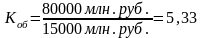 Коэффициент оборачиваемости (Коб) - это количество совершаемых оборотов оборотными средствами в течение определенного периода, определяется отношением объема реализованной продукции (РП) к средним остаткам оборотных средств предприятия (