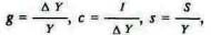 с — капитальный коэффициент (capital — капитал), или коэффициент капиталоемкости; он показывает "инвестиционную цену" одной единицы прироста дохода или продукции, иначе говоря: с = I/^Y ; наконец, s — доля сбережений в национальном доходе, или склонность к сбережению: s = S/Y.